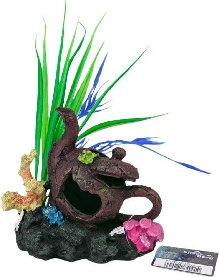 для аквариума, кувшин, материал пластик, зеленый/коричневый/синий/черный, длина 12 см, ширина 8 см, высота 16 см