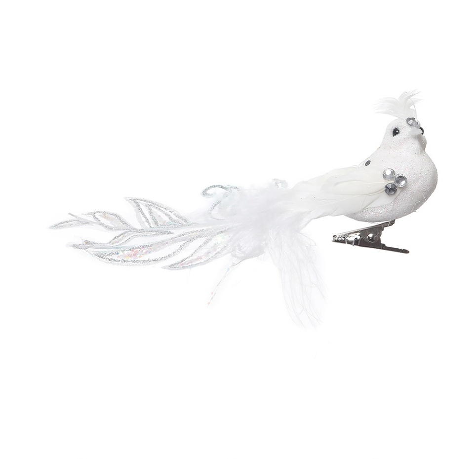Декор для елки на прищепке Коллекция Праздник Птичка с хохолком белая, 19 см