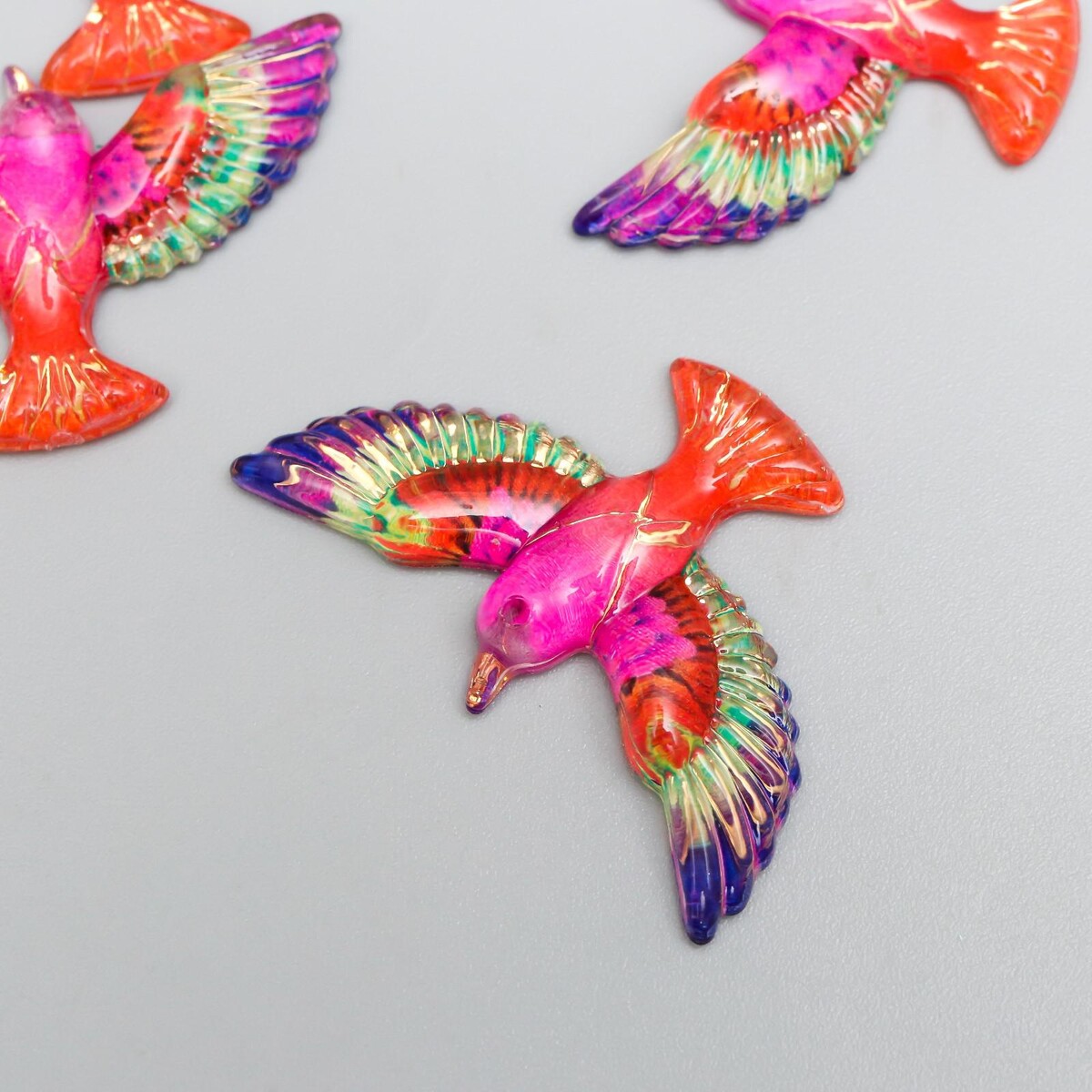 Декор для творчества пластик "Птица розово-оранжевая с золотом" 2,3х3,5х0,4 см.