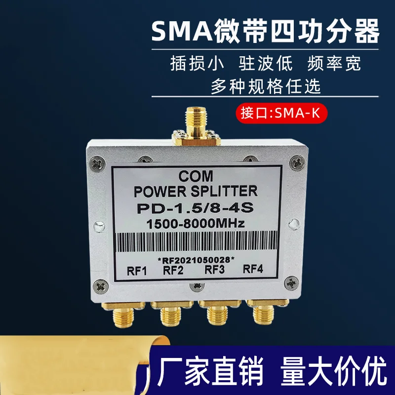 Делитель мощности, делитель мощности один-четыре SMA Microstrip, 1,5-8 ГГц, четыре делителя Мощности, 1500-8000, от одного до четырех разветвителей