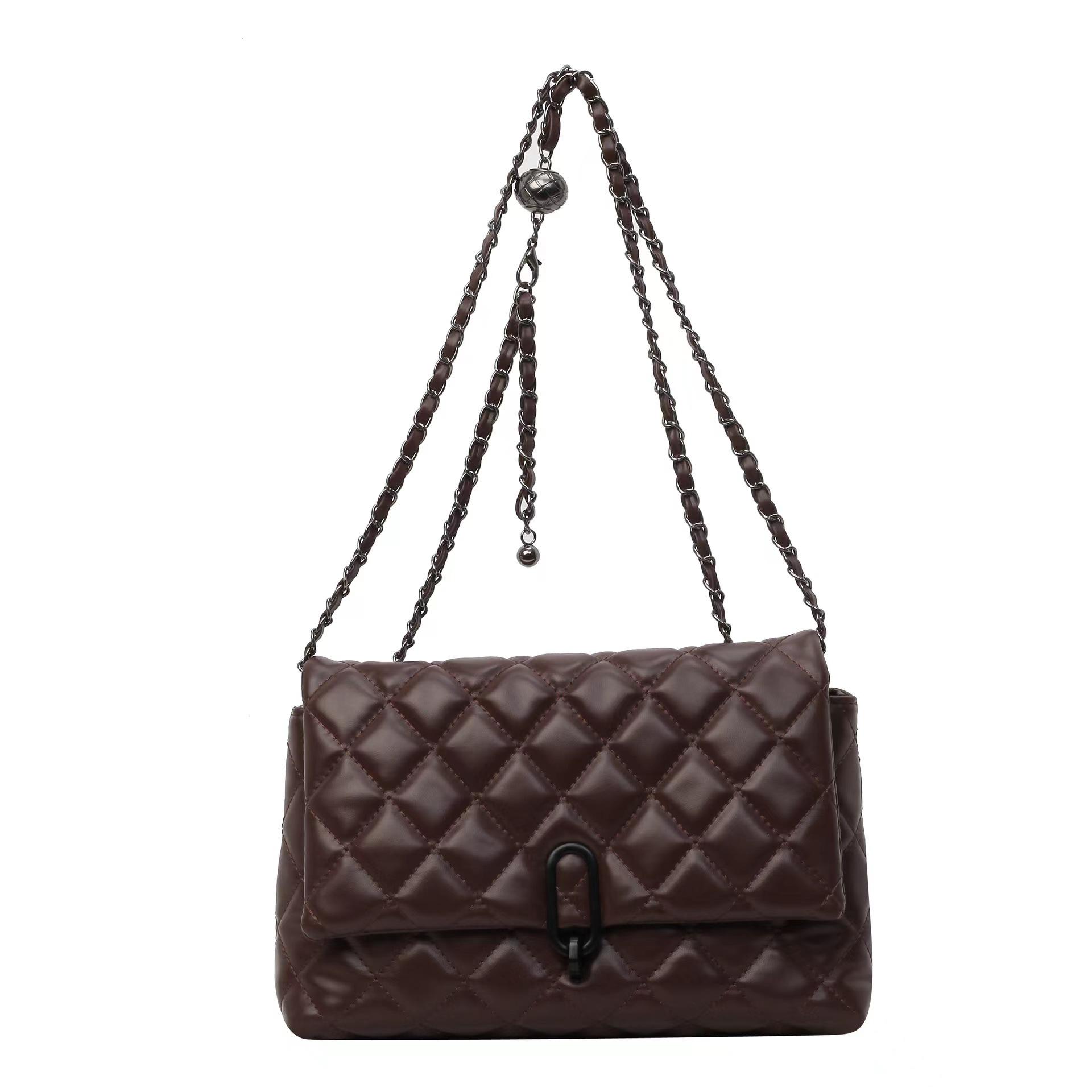 Деловая дорожная сумка Xiaoxiangfeng Rhombus с вышитыми нитками женская сумка-цепочка нишевая популярная сумка-мессенджер на одно плечо в этом году темно-коричневого