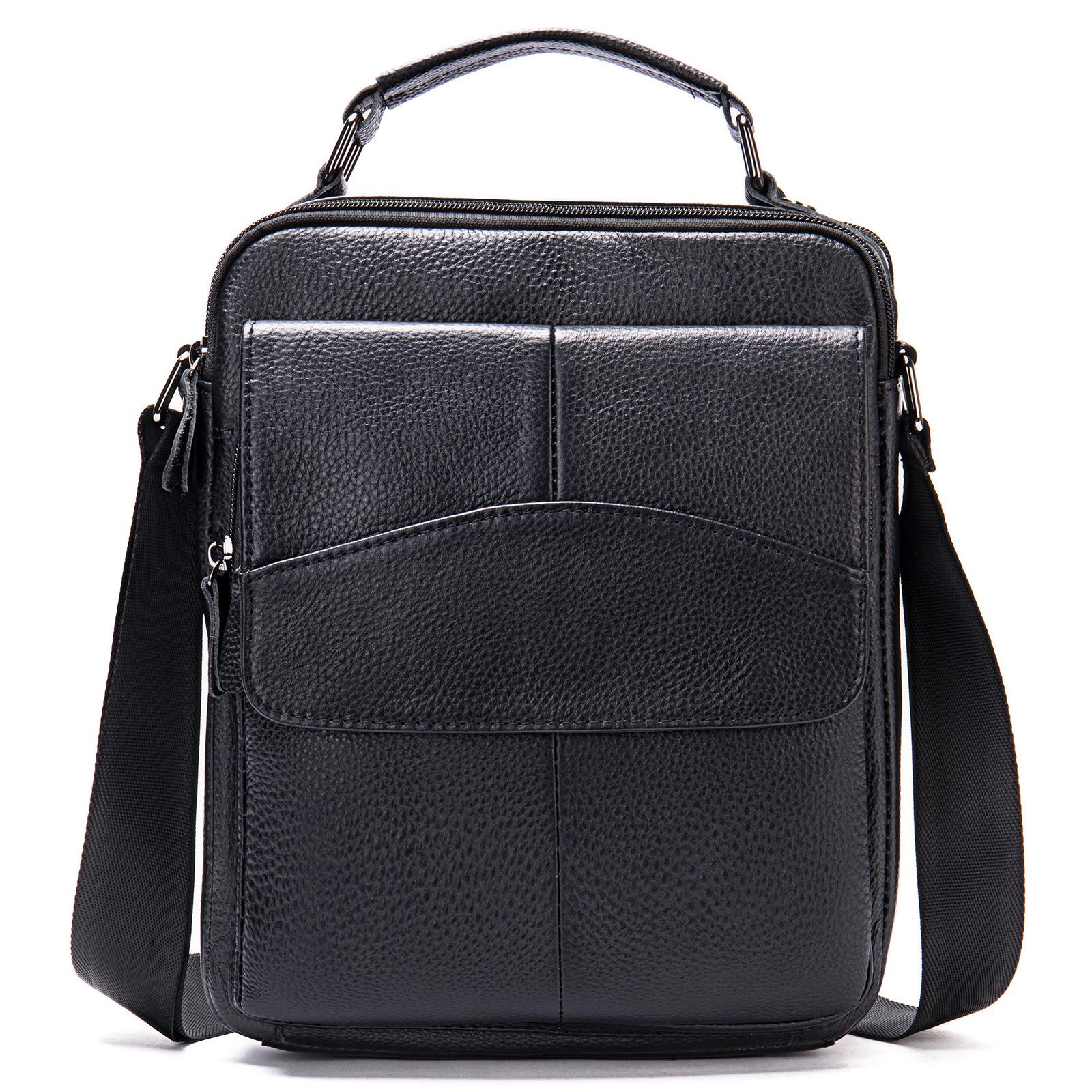 Деловая мужская сумка через плечо из коровьей кожи с ручкой и ремнем через голову, большая вместимость чёрный
