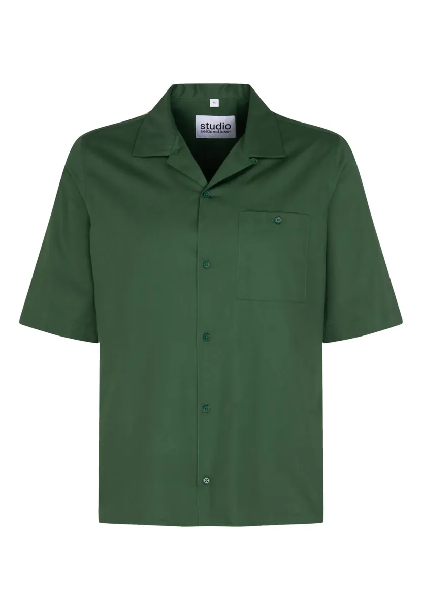 Деловая рубашка studio seidensticker "Studio", обычный короткий рукав, воротник с лацканами, однотонная, зеленый