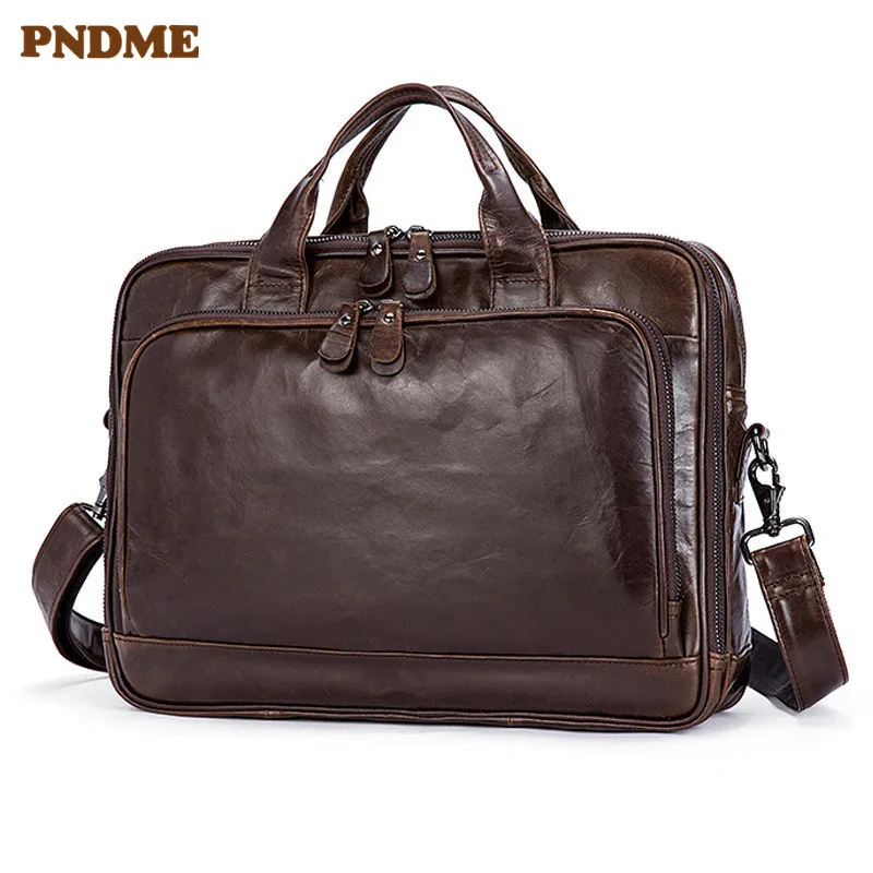 Деловой Винтажный Мужской портфель из натуральной вощеной воловьей кожи, повседневная сумка из натуральной кожи, рабочая сумка через плечо...