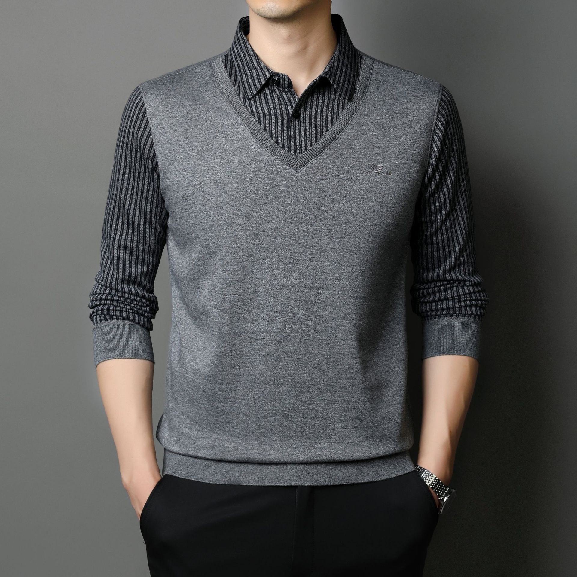 Деловой повседневный мужской свитер среднего возраста, модный мужской свитер из двух частей, осенний новый свитер с воротником-рубашкой 3XL серый