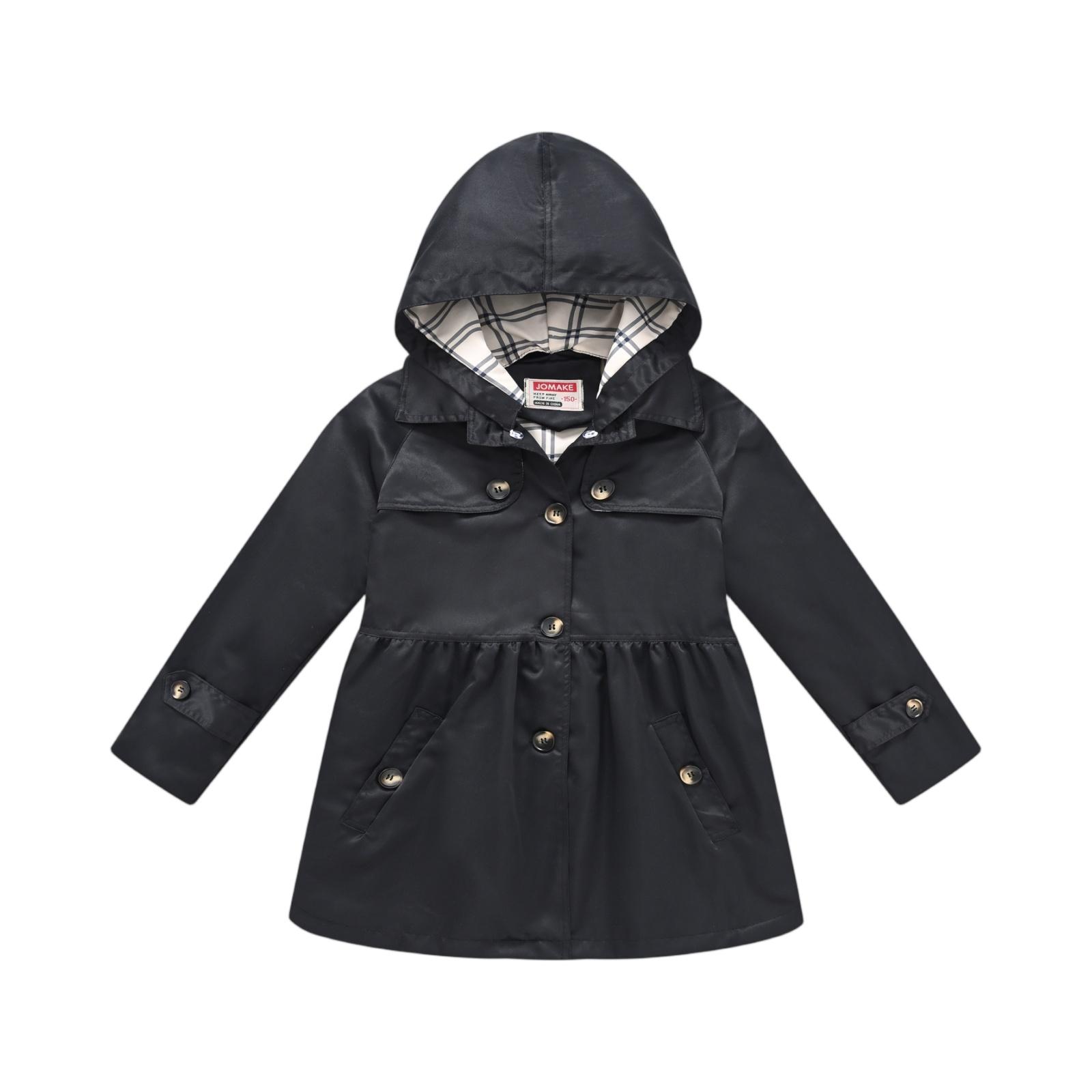 Демисезонный тренч для девочек со съемным капюшоном - Однотонное пальто с поясом 120 чёрный