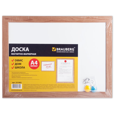 Демонстрационная доска Brauberg магнитно-маркерная, 25x34см, лак (белый)/МДФ (231993)
