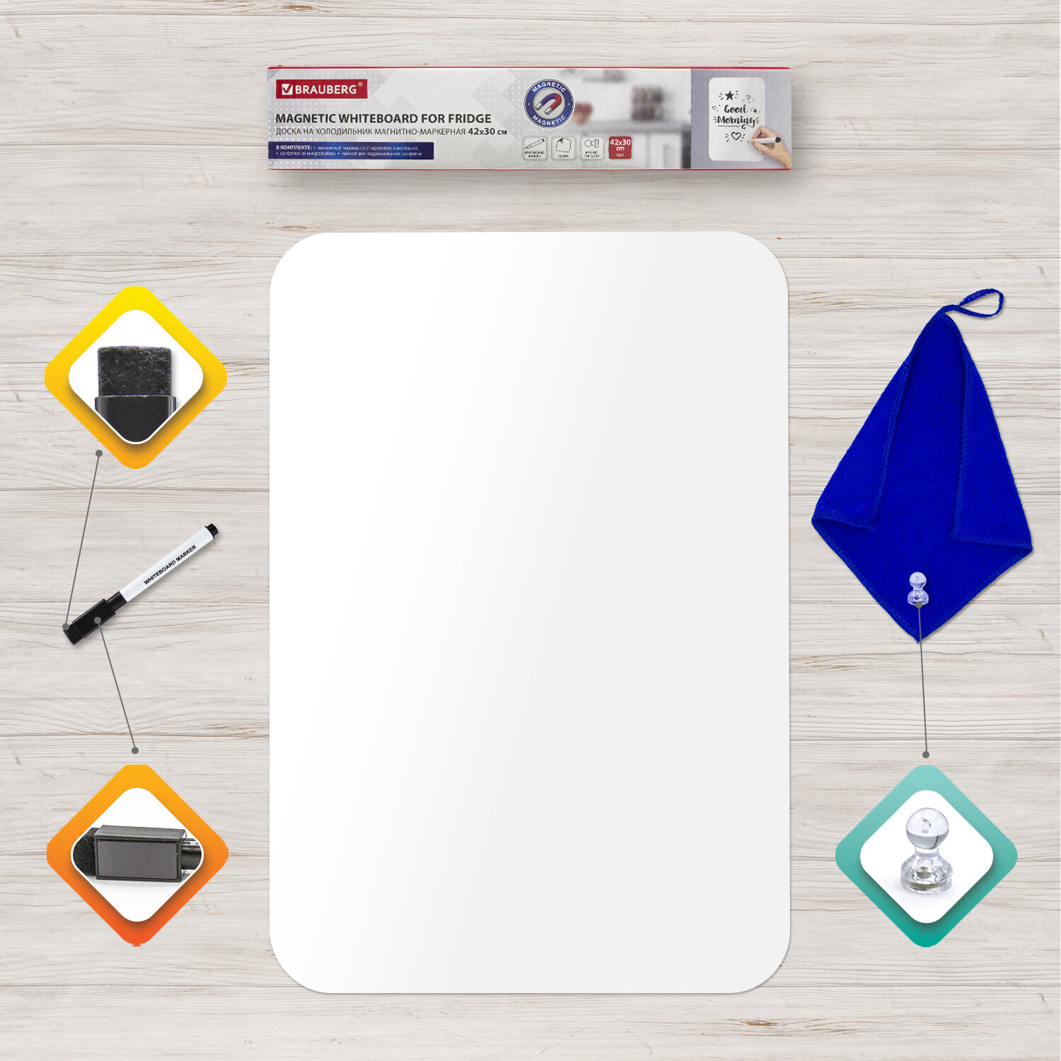 Демонстрационная доска Brauberg магнитно-маркерная, 42х30см, (белый)/пластик, на холодильник (237847)