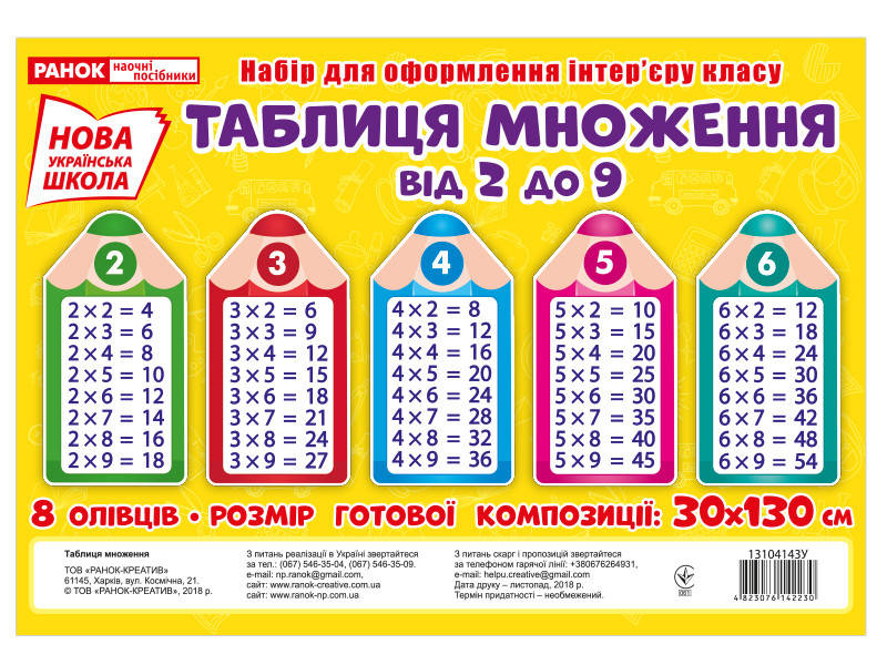 Демонстраційний матеріал.Таблиця Множення.Олівці