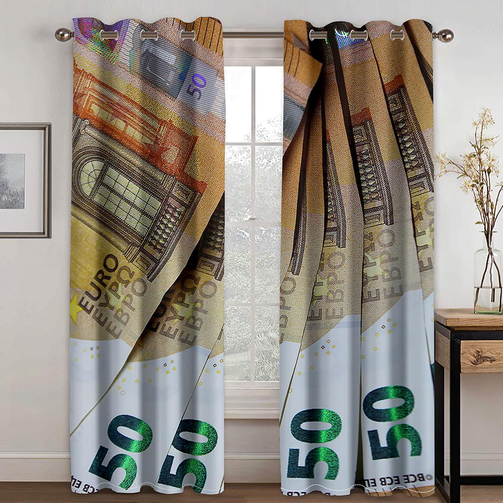 Деньги Золотая монета Доллары США Распродажа Оконные шторы Шторы Жалюзи для детей Спальня Гостиная Кухня Дверь Домашний декор 2 шт. Milled cotton fabric&Rod Pocket