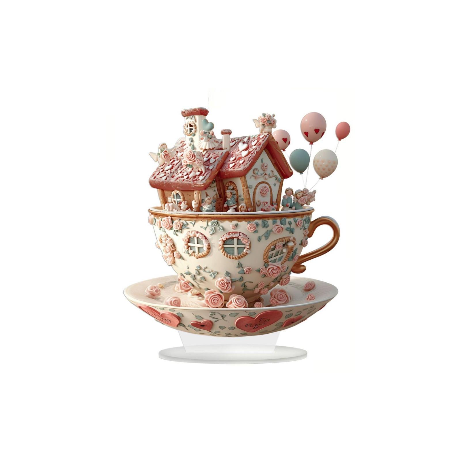 День святого Валентина Европейский замок мечты Чайная чашка День святого Валентина Украшение рабочего стола Акриловые водонепроницаемые износостойкие украшения One Size розовый