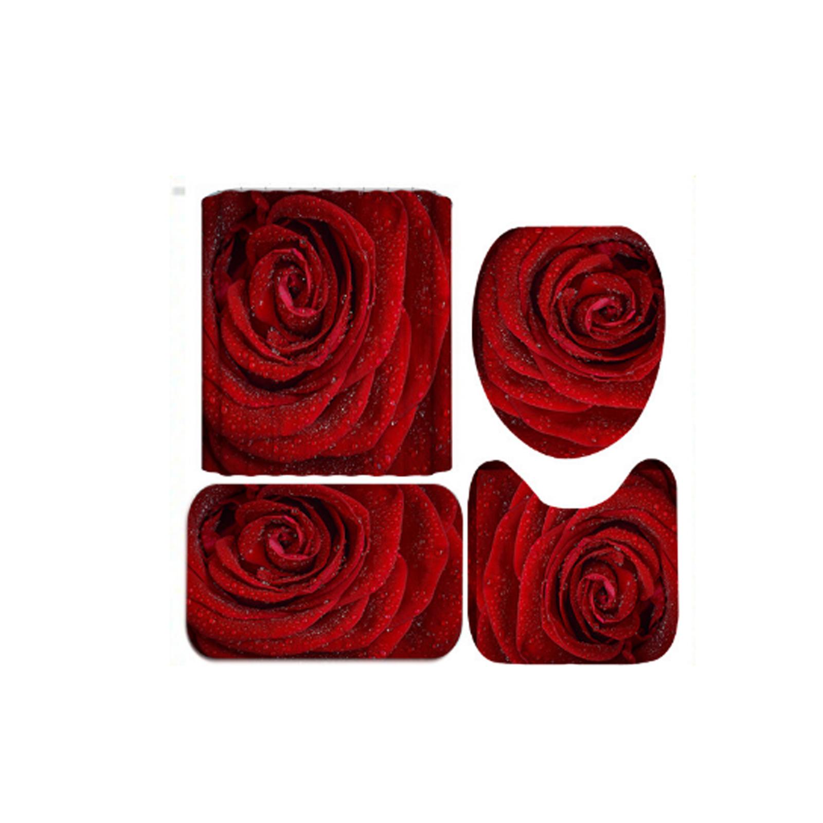 День святого Валентина Печатный ковер для душа Коврик для пола Комбинация Коврик для ванной комнаты Туалетный коврик Комплект из четырех предметов для ванной комнаты