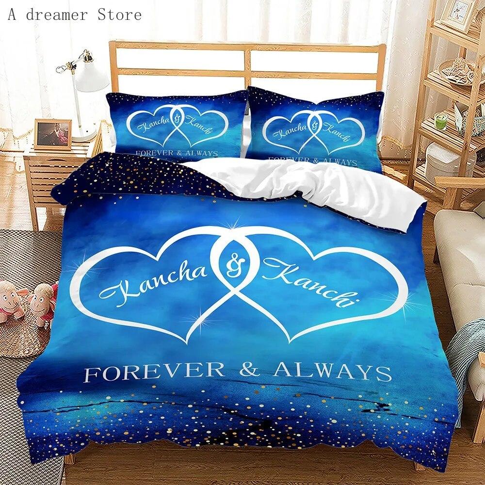 День святого Валентина, комплекты постельного белья с 3D-принтом в виде сердца и любви, индивидуальное имя, одинарный, двойной размер, модный пододеяльник с цветком розы, наволочка EU Single135x200cm