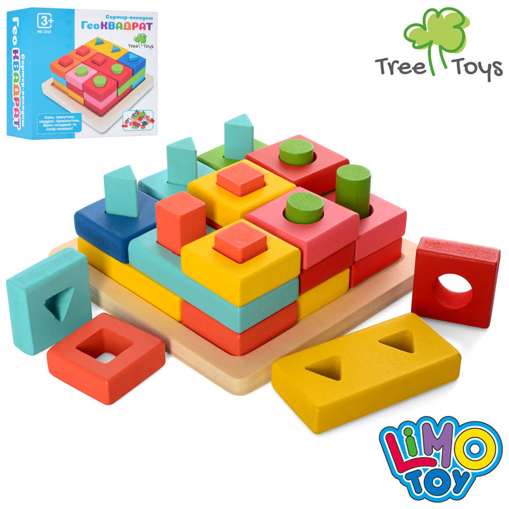 Дерев'яна іграшка Геометрика MD 2345 сортер-вкладиш, геом. фігури, кор., 16-16-7 см.