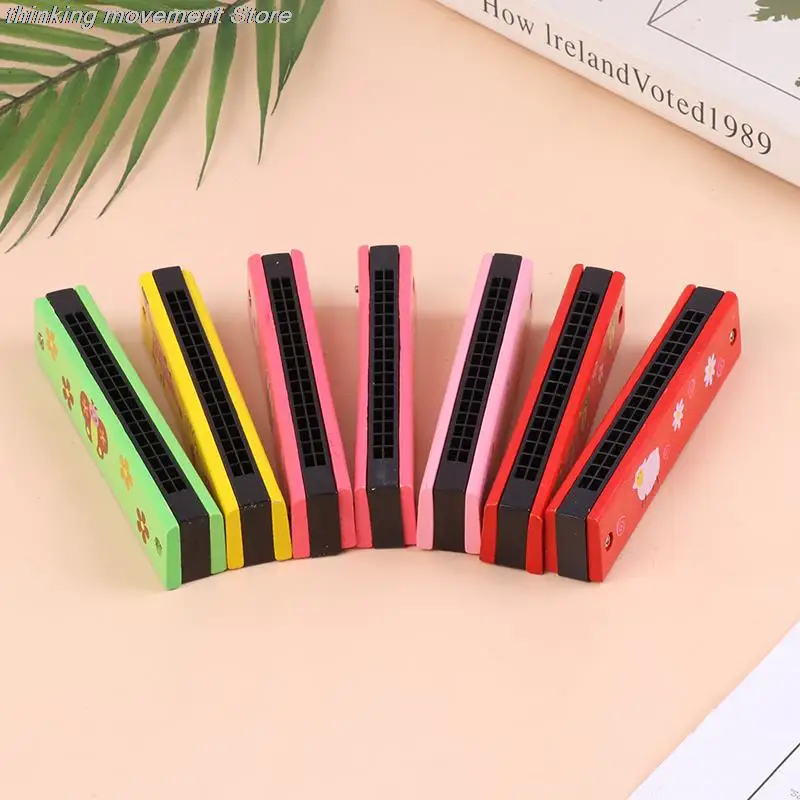 Деревянная двухрядная дутая гармоника с 16 отверстиями, милые Мультяшные узоры для начинающих, детские музыкальные развивающие игрушки