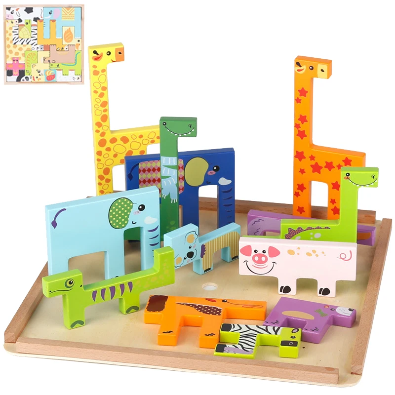 Деревянная детская раскраска, милый блок животных, креативная головоломка, игрушка, пазл для раннего развития, строительный блок