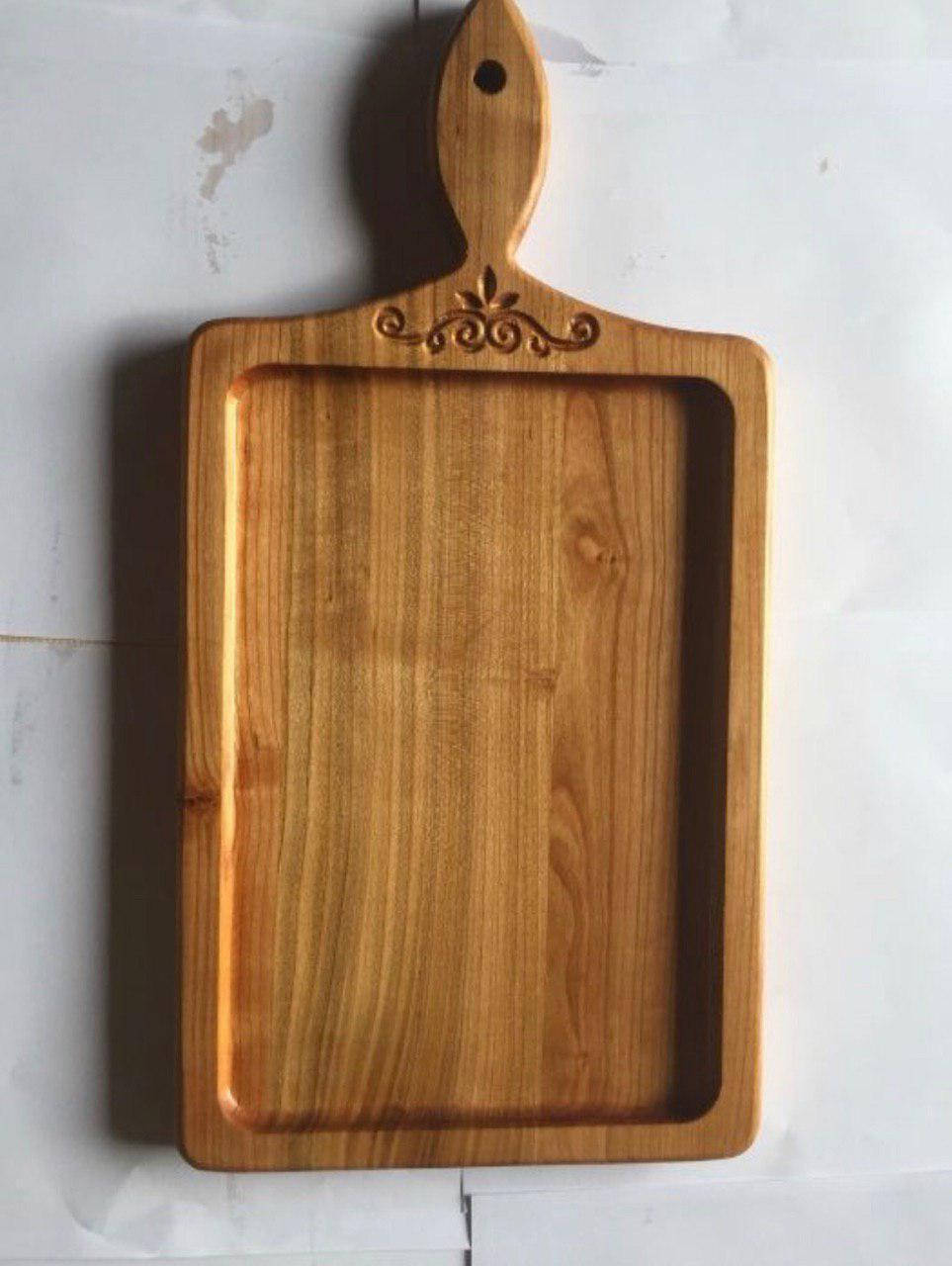 Доска для подачи или менажница. Материал изготовления черешня. Изготовление происходит путем склеивания кусков дерева в цельную доску. После чего проходит все стадии шлифовки, затем на специальном оборудовании создается лицевая сторона доски и в конце обрабатывается маслом. В результате мы можем любоваться непревзойденным видом и интересной структурой! Разделочная доска является долговечна, удобна, противостоит воде, не скручивается.