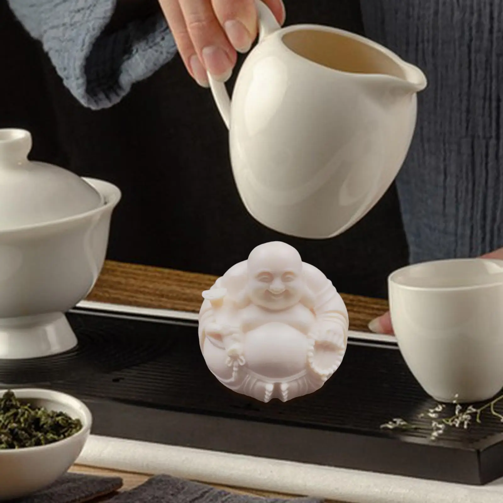 Деревянная резьба Maitreya сидячая статуя 2x1,7x1,7 дюйма фэн-шуй ремесла ручной работы украшение стола для Дома Офиса легкий
