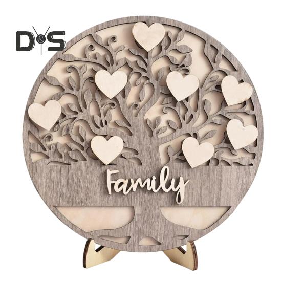 Деревянное семейное дерево, деревенская семейная любовь, настольная табличка, многослойное украшение в виде сердца с подставкой для подарка на День матери, украшение для каминной полки 1 Set