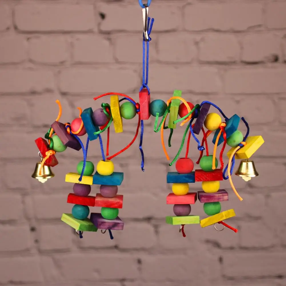 Деревянные блоки для домашних животных, птиц, попугаев, клетка из хлопчатобумажной веревки, подвесная стоячая игрушка для жевания, Красочна...