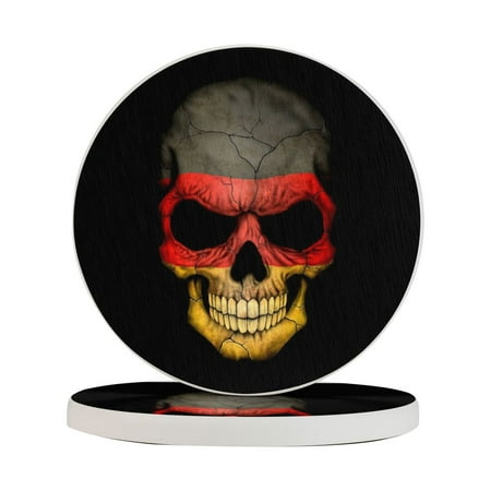 Circular Drink Coasters Set German Flag Skull Printed Beautiful Home Decor Diatomite Heat-Resistant Diatomite Protect Table Countertop