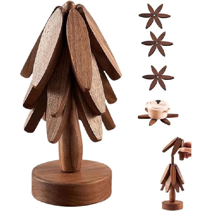 Деревянные подставки - Складной набор из 4 подставок в форме дерева для блюд, кастрюль, мисок, чайников, горячих кастрюль 3 Piece-walnut