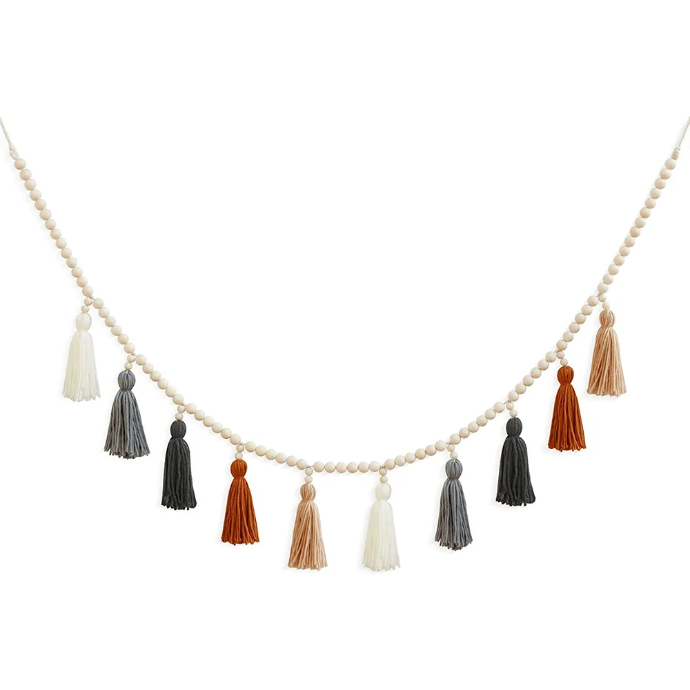 Деревянный венок с бахромой, Настенный декор с бахромой в стиле бохо для спальни, детской комнаты, вечеринки для будущей мамы, декор для комн...