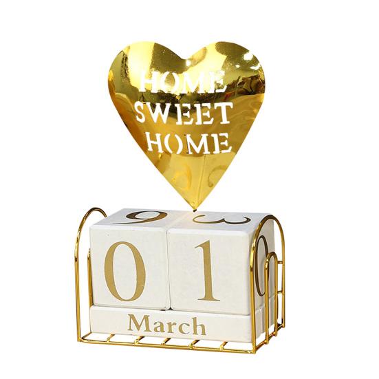 Деревянный вечный блочный календарь для стола, деревянные блоки для отображения месяца и даты, с железной фигуркой листа/сердца для декора дома и офиса B