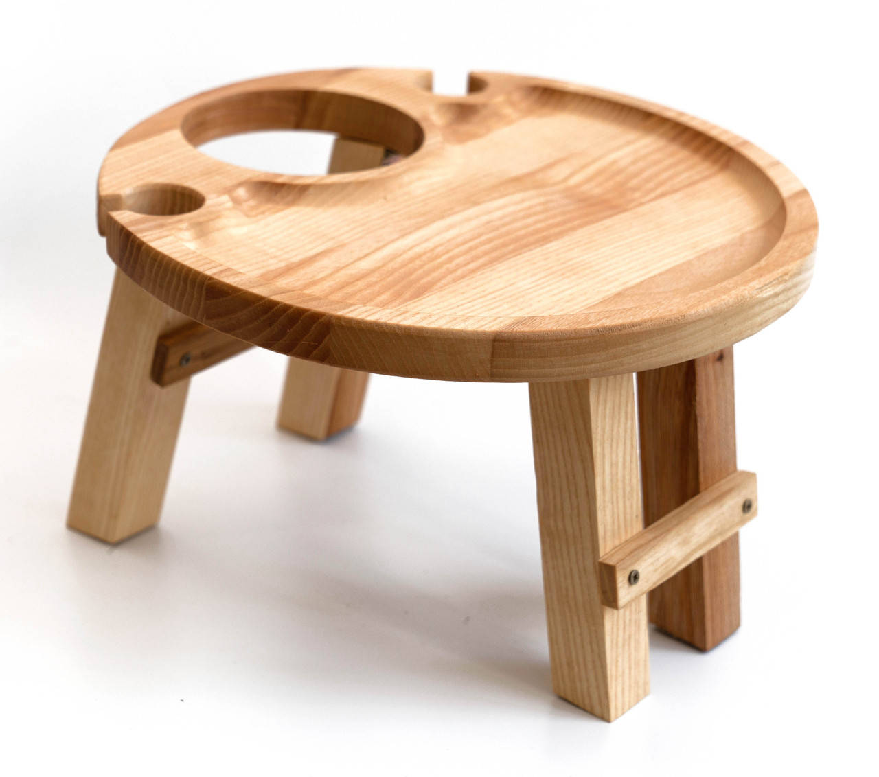 Этот винный столик создан для самых настоящих гурманов и ценителей красивой подачи вина, закуски, фруктов, круассанов кофе и не только. Удачное решение для романтического ужина или встречи с друзьями. И неважно дома или на природе, ведь благодаря своей компактности и универсальности этот винный столик будет удобным практически везде. Также это идеальный вариант для подарка, поскольку он имеет выемки под бокалы и специальное место под бутылку.
