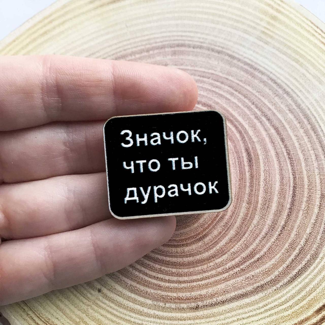 Значок «Значок, что ты дурачок!» может служить в качестве сувенира или же броши, прицепите его на свитер, сумку, рюкзак, шарф или же шапку и поднимите настроение себе и всем окружающим!