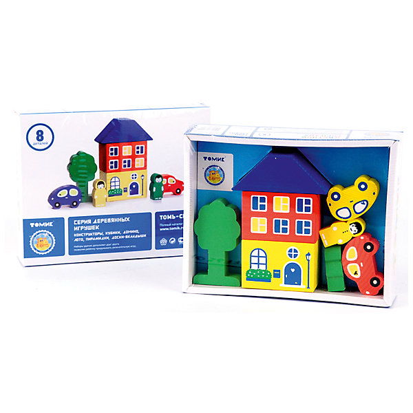 Деревянный конструктор Томик "Цветной городок", 8 деталей (голубой)