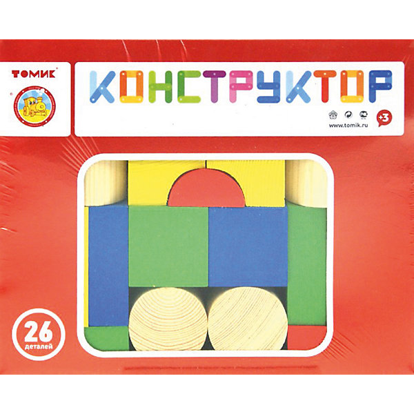 Деревянный конструктор Томик "Цветной", 26 деталей