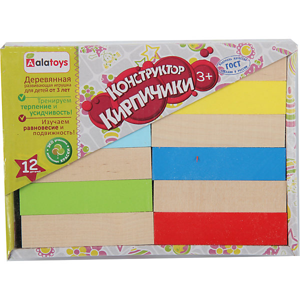 Деревянный конструктор Alatoys "Кирпичики", 12 деталей (наполовину окрашенный)