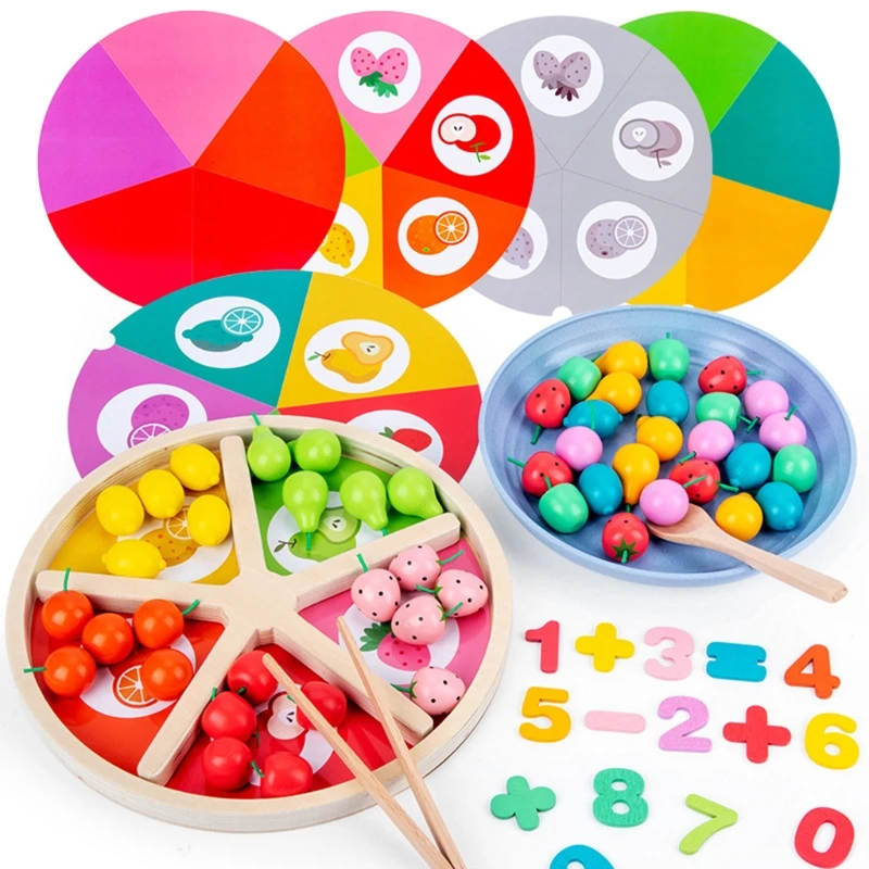 Деревянный лоток для сортировки фруктов, Игрушки для раннего развития, цветные когнитивные математические подарки для обучения