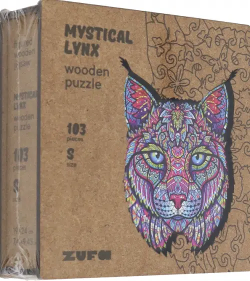 Деревянный пазл с двухслойной крышкой Мистическая Рысь, 103 детали, Оранжевый