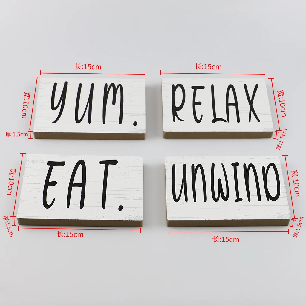Деревянный поднос в несколько рядов, 4 шт., вывески, художественные слова, печать деревянных блоков, расслабление, ням-еда, вывеска для украше...