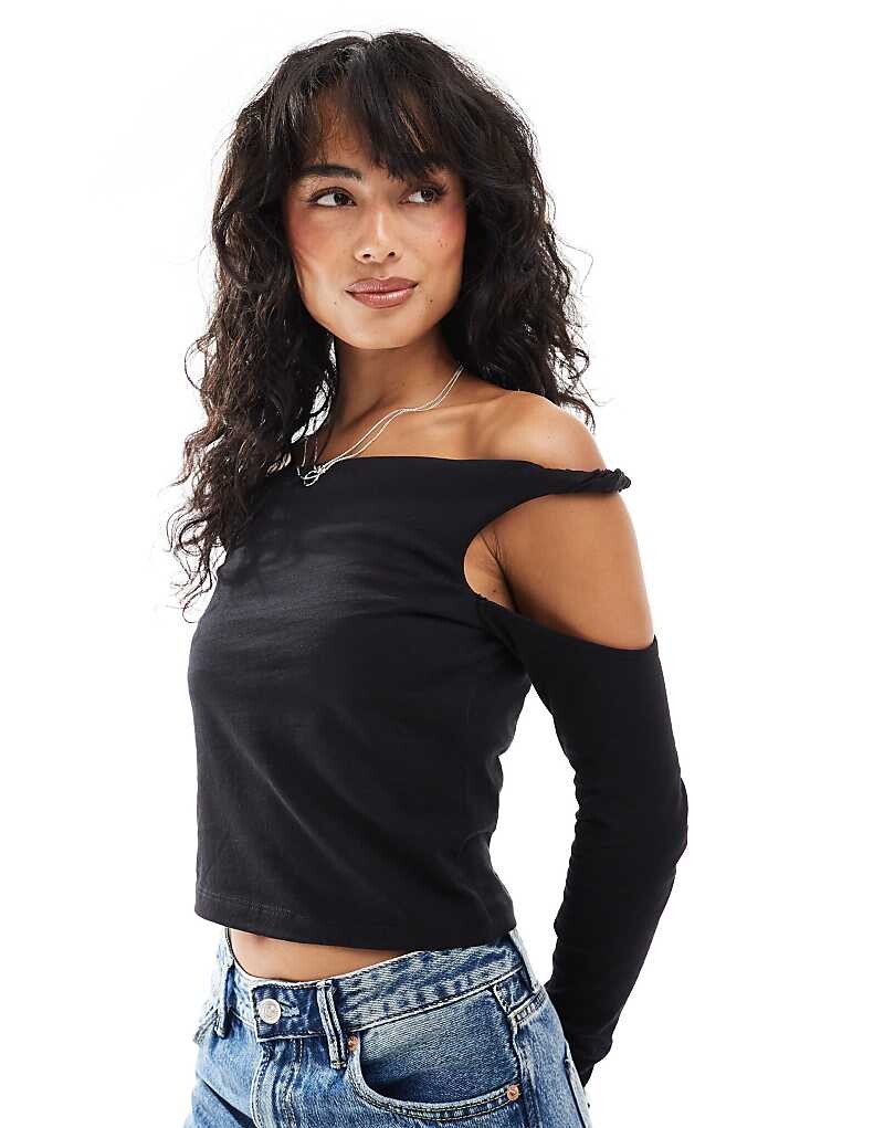 ASOS DESIGN – черный топ с открытыми плечами, длинными рукавами и перекрученными бретелями