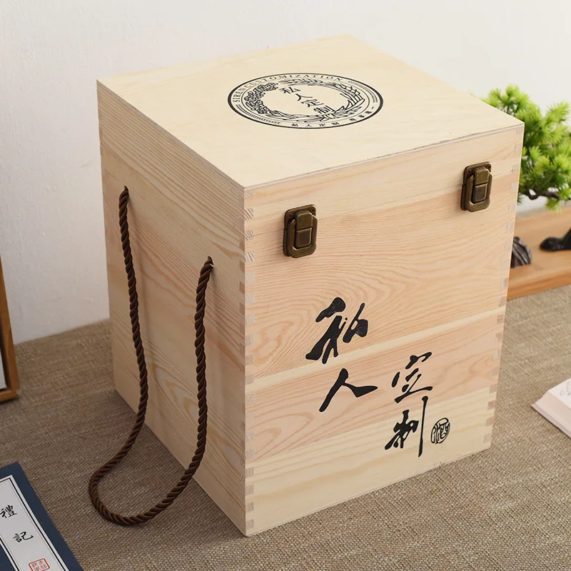 Деревянный чехол для винной банки, деревянная коробка большой вместимости для ликера, деревянная подарочная упаковочная коробка, оформлен...