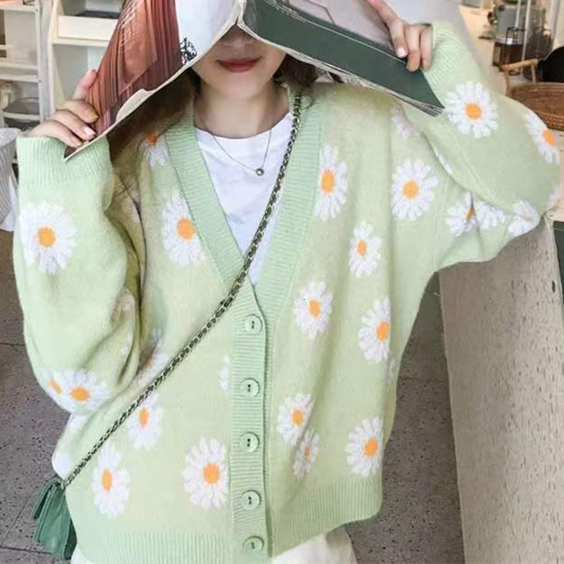Women's Sweaters Margarida printed cardigan knitted or crocheted with cleavage v button up jacquard women's sweater kawaii e-girl outfit 7E8B, 1# shoe box