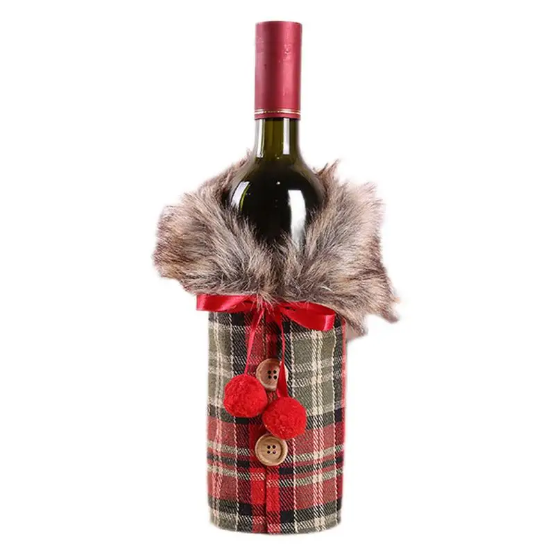 Держатель для винной бутылки, рождественское винное искусственное украшение с воротником из искусственного меха и пуговицами, рождественские украшения для вина, подарки