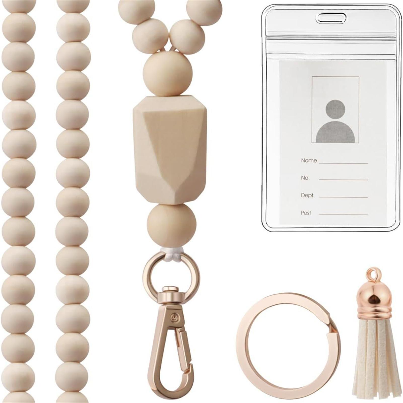 Держатель для карточек и шнурок с бусинами для женщин, прозрачный держатель для карточек с бусинами, шейный ремешок, кисточки, брелок с подвеской 3