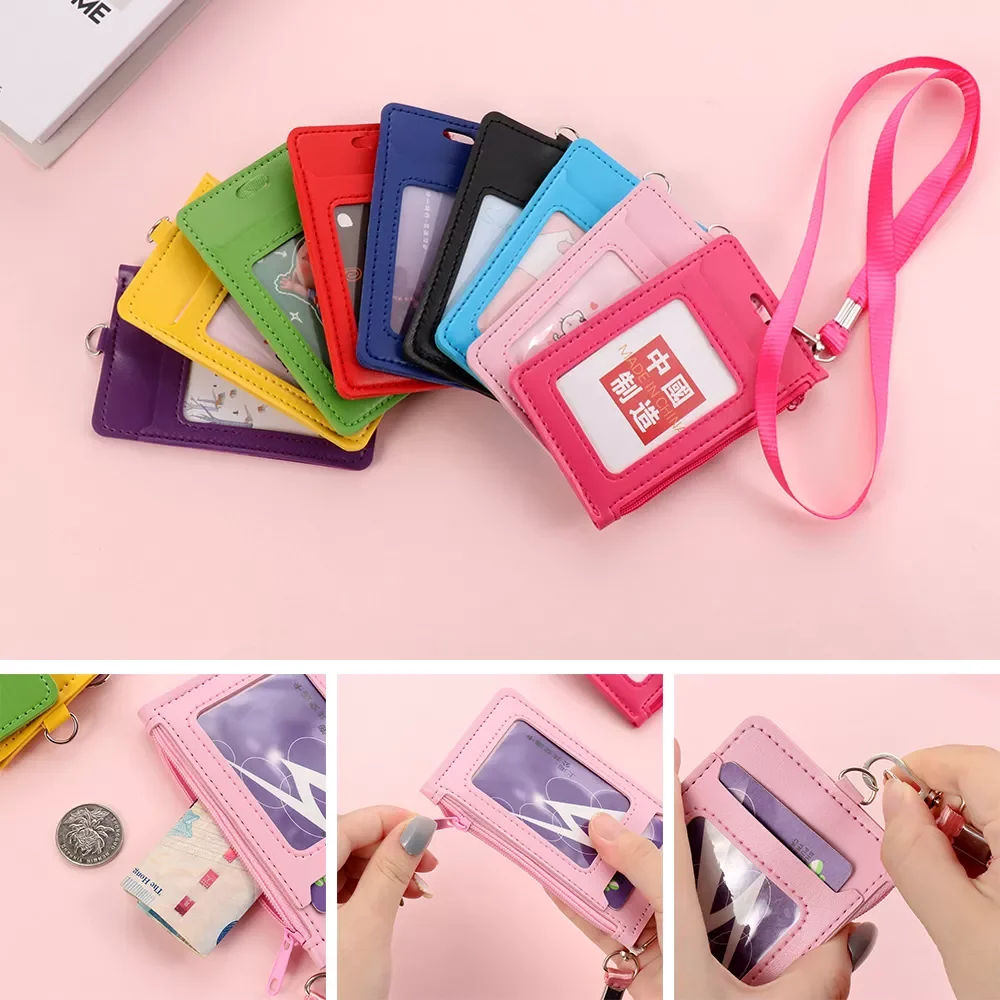Держатель для карт со шнурком, чехол из искусственной кожи для визиток, школьных и офисных принадлежностей, чехол для студенческих карт с ка...