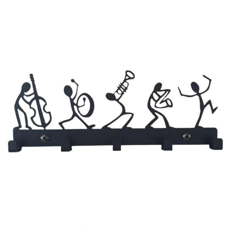 Держатель для ключей симфонического оркестра, винтажный черный металлический настенный крючок для ключей, вешалка для входной двери, 5 крючков, украшение для дома