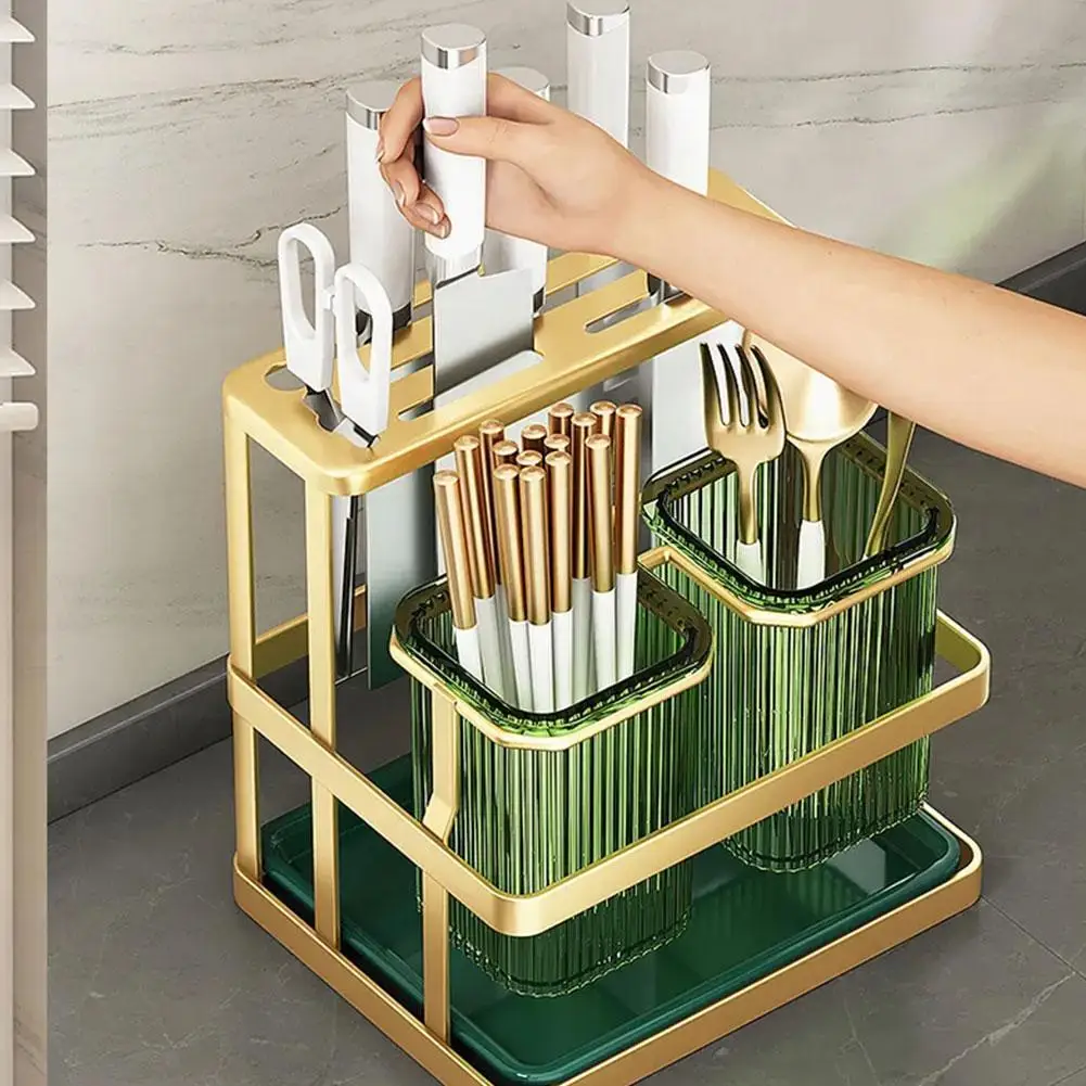 Держатель для кухонных столовых приборов, стойка для хранения, держатель для посуды со съемным лотком для воды, органайзер для кухонных резаков