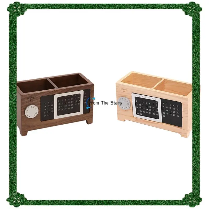 Держатель для ручек-календаря, многофункциональный настольный офисный ящик для хранения, офисные настольные украшения, ящик для хранения из клена, цвет дерева