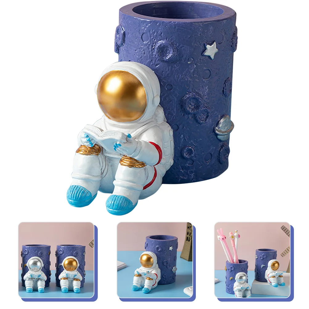 Держатель для ручек, круглая подставка для ручек, статуэтка космического человека, декоративный держатель для карандашей, настольное украшение для макияжа
