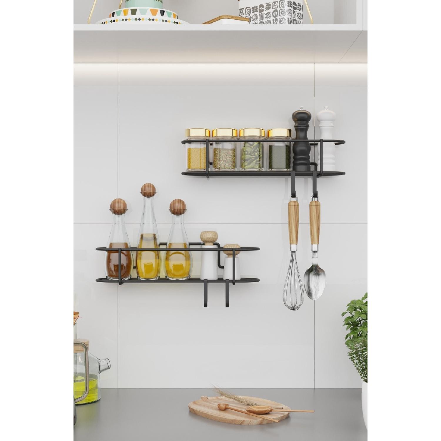 Держатель для специй, набор из 2 черных матовых металлических кухонных полок, полка для ванной, липкий крючок, вешалка для солонки