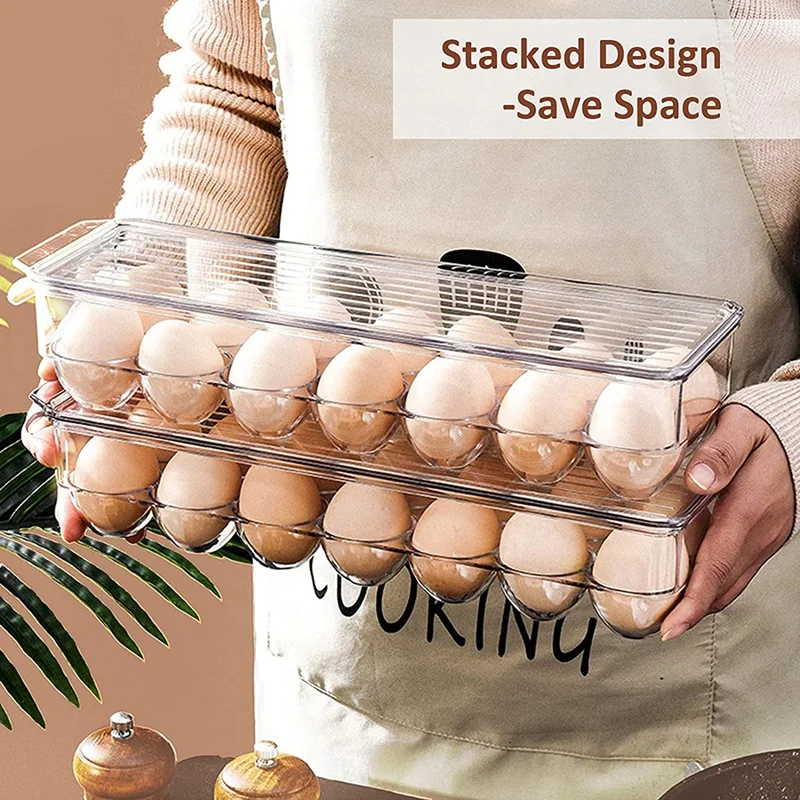 Держатель для яиц для холодильника, 2 упаковки, Штабелируемый контейнер для хранения яиц для холодильника, контейнер для холодильника