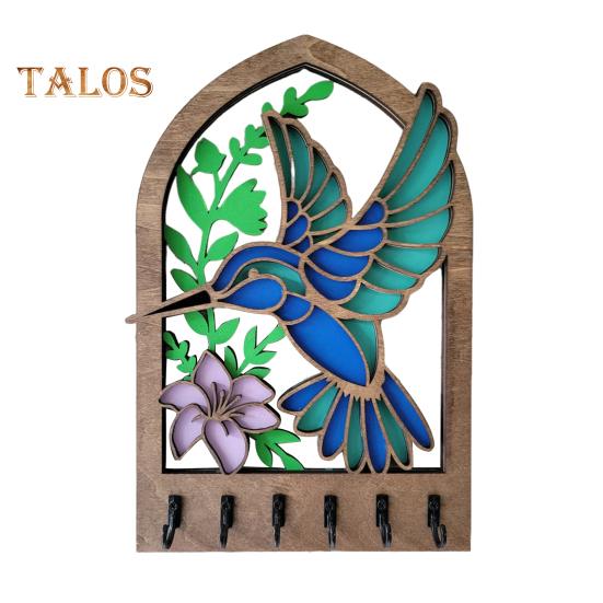 Держатель ключей в виде колибри с 6 металлическими крючками, гладкий край без заусенцев, деревянный крючок для ключей в виде птицы, органайзер для прихожей розовый