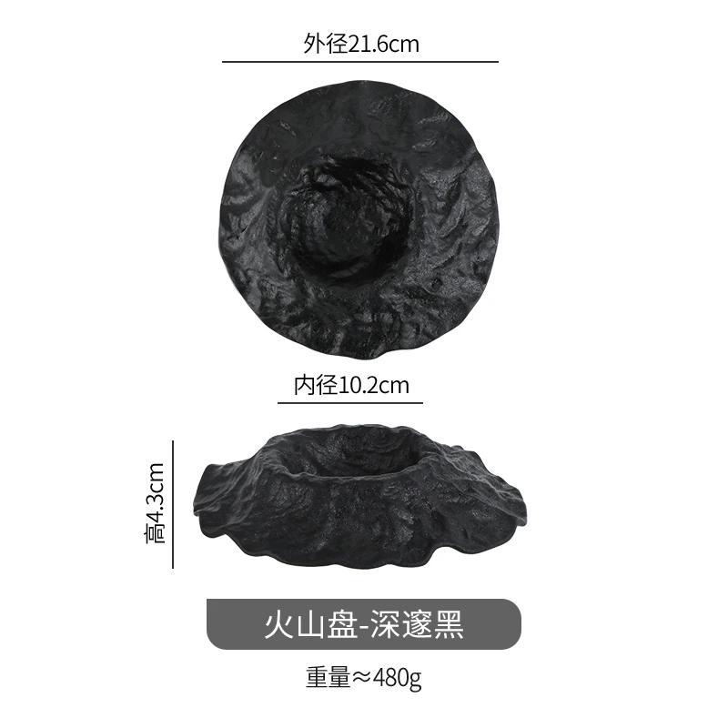 Десертная тарелка в форме вулкана Керамическая обеденная тарелка Тарелки для стейков Блюдо для димсамов Фруктовые тарелки Салатница Диск-поднос Суповая миска чёрный